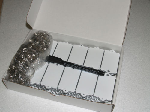 Every box of keytags is accompanied by steels ring for your convenience and a permanent marker is included for use on tags.
